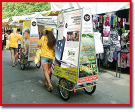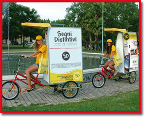 La BiciVela rappresenta una novità esclusiva, per una pubblicità finalmente all'avanguardia, originale, ecologica e vincente.
